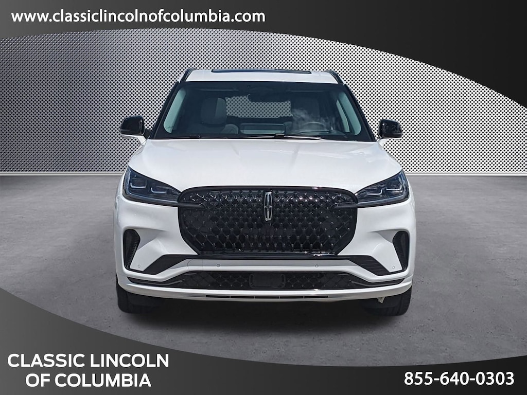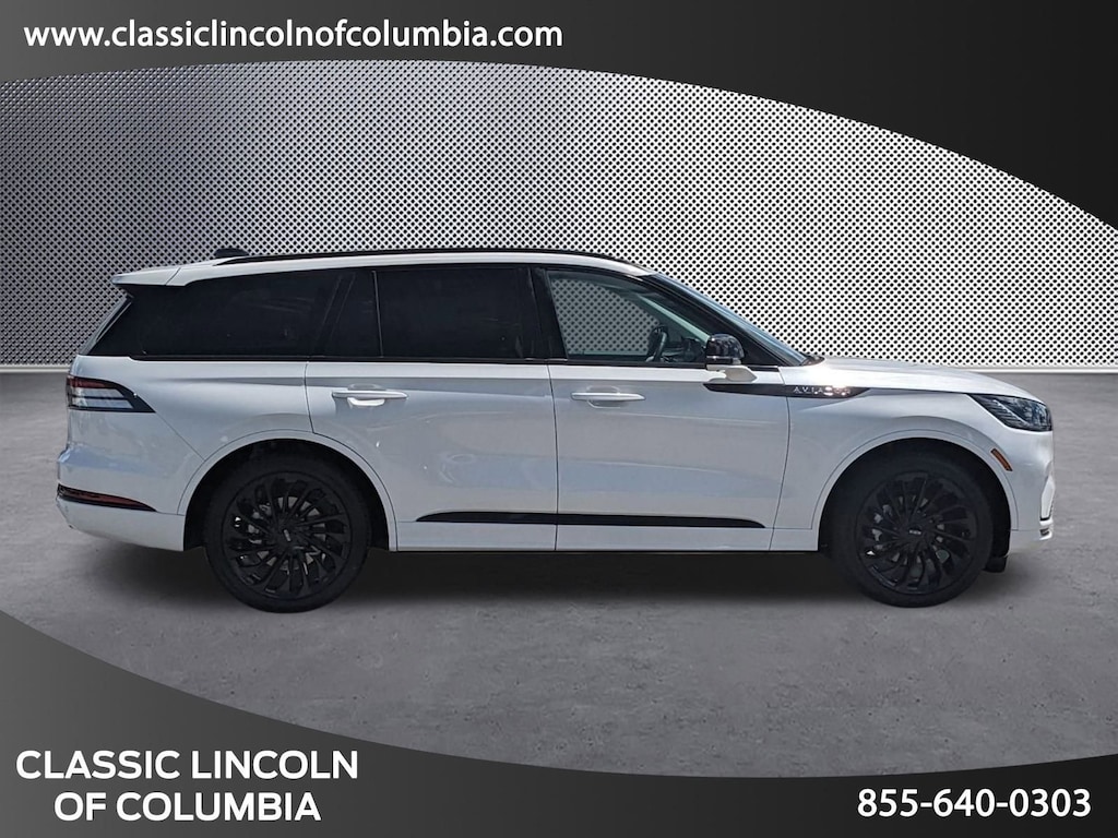 Extended Service Programs Available, 14 Speakers, 3rd row seats: split-bench, 4-Wheel Disc Brakes, 40/Mini Console/40 Dual Captain's Chairs, ABS brakes, Adaptive suspension, Air Conditioning, Alloy wheels, AM/FM radio: SiriusXM, Apple CarPlay/Android Auto, Audio memory, Auto High-beam Headlights, Auto-dimming door mirrors, Auto-dimming Rear-View mirror, Automatic temperature control, Brake assist, Bumpers: body-color, Compass, Delay-off headlights, Driver door bin, Driver vanity mirror, Dual front impact airbags, Dual front side impact airbags, Electronic Stability Control, Four wheel independent suspension, Front anti-roll bar, Front Bucket Seats, Front Center Armrest, Front dual zone A/C, Front reading lights, Fully automatic headlights, Garage door transmitter, Heads-Up Display, Heated door mirrors, Heated front seats, Heated steering wheel, HVAC memory, Illuminated entry, Knee airbag, Leather steering wheel, Lincoln BlueCruise Equipped (4-Years Included), Lincoln Digital Experience, Low tire pressure warning, Memory seat, Navigation system: Connected Navigation (1-year trial), Occupant sensing airbag, Outside temperature display, Overhead airbag, Overhead console, Panic alarm, Passenger door bin, Passenger vanity mirror, Power door mirrors, Power driver seat, Power Liftgate, Power moonroof: Panoramic Vista Roof, Power passenger seat, Power steering, Power windows, Premium Lthr Heated/Ventilated Fnt Captain's Chairs, Radio data system, Radio: Revel Audio System w/14 Speakers, Rain sensing wipers, Rear air conditioning, Rear anti-roll bar, Rear audio controls, Rear dual zone A/C, Rear reading lights, Rear window defroster, Rear window wiper, Remote keyless entry, Security system, SiriusXM, Speed control, Speed-Sensitive Wipers, Split folding rear seat, Spoiler, Steering wheel memory, Steering wheel mounted A/C controls, Steering wheel mounted audio controls, Tachometer, Telescoping steering wheel, Tilt steering wheel, Traction control, Trip computer, Turn signal indicator mirrors, Variably intermittent wipers, Ventilated front seats, Wheels: 21" Bright-Machined Aluminum.