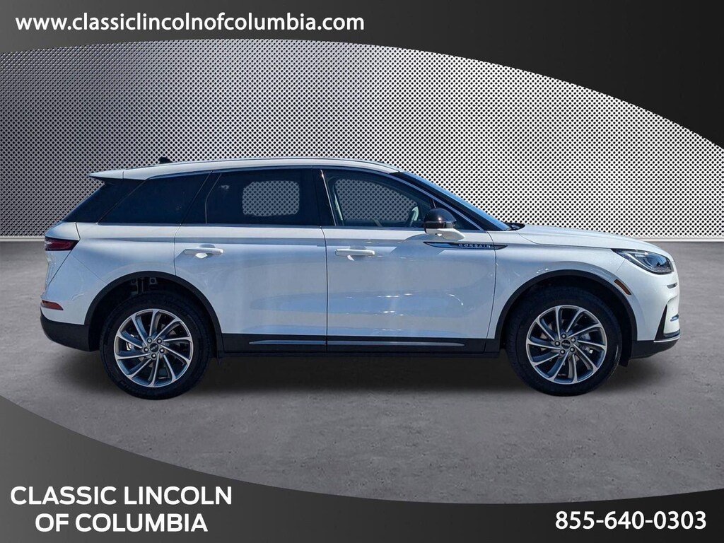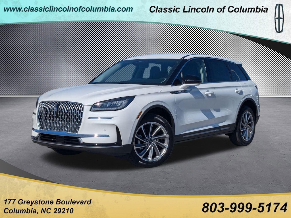 Recent Arrival! Extended Service Programs Available, 4-Wheel Disc Brakes, 9 Speakers, ABS brakes, Air Conditioning, Alexa Built-In, Alloy wheels, AM/FM radio: SiriusXM with 360L, Apple CarPlay/Android Auto, Auto High-beam Headlights, Auto-dimming Rear-View mirror, Automatic temperature control, Brake assist, Bumpers: body-color, Compass, Delay-off headlights, Driver door bin, Driver vanity mirror, Dual front impact airbags, Dual front side impact airbags, Electronic Stability Control, Emergency communication system: 911 Assist, Four wheel independent suspension, Front anti-roll bar, Front Bucket Seats, Front Center Armrest, Front dual zone A/C, Front reading lights, Fully automatic headlights, Heated door mirrors, Heated front seats, Illuminated entry, Knee airbag, Leather steering wheel, Lincoln Soft Touch Heated Front Captain's Chairs, Low tire pressure warning, Memory seat, Navigation system: Connected Navigation (4-year trial), Occupant sensing airbag, Outside temperature display, Overhead airbag, Overhead console, Panic alarm, Passenger door bin, Passenger vanity mirror, Power door mirrors, Power driver seat, Power Liftgate, Power passenger seat, Power steering, Power windows, Radio data system, Radio: Lincoln Premium Audio System w/MP3, Rear anti-roll bar, Rear Parking Sensors, Rear reading lights, Rear seat center armrest, Rear window defroster, Rear window wiper, Remote keyless entry, Security system, SiriusXM w/360L Radio, Speed control, Speed-sensing steering, Speed-Sensitive Wipers, Split folding rear seat, Spoiler, Steering wheel mounted A/C controls, Steering wheel mounted audio controls, SYNC 4 Communications & Entertainment System, Tachometer, Telescoping steering wheel, Tilt steering wheel, Traction control, Trip computer, Variably intermittent wipers, Wheels: 18 Warm Painted Alloy.2025 Lincoln Corsair Premiere White FWD 8-Speed Automatic 2.0L I4Drivers in the greater Columbia SC rely on us for their next new or Lincoln Certified Pre-owned vehicle and automotive needs because we treat them like family. Customers make the trip from Lexington, Orangeburg, and Sumter because we are the new Lincoln dealership in the area that not only provides an array of quality products and services, but customer care that is unmatched! Here, at the Classic Lincoln of Columbia deal, you can count on the integrity of our Lincoln Certified Pre-owned vehicle collection.While every reasonable effort is made to ensure the accuracy of this information, it is the customers responsibility to verify price, vehicle equipment and availability with Classic Lincoln of Columbia. Price shown does include $699.00 closing fee but not applicable taxes, tag fees, and dealer installed accessories.