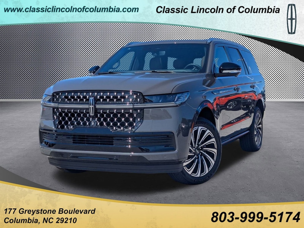 Recent Arrival! Extended Service Programs Available, 4WD, Warm Horz Lthr Leather, 28 Speakers, 3rd row seats: split-bench, 4-Wheel Disc Brakes, A/V remote, ABS brakes, Adaptive suspension, Adjustable pedals, Air Conditioning, Alloy wheels, AM/FM radio: SiriusXM with 360L, Apple CarPlay/Android Auto, Audio memory, Auto High-beam Headlights, Auto Htd & Ventilated Opulence Lthr Capt Chair, Auto Start-Stop Technology, Auto tilt-away steering wheel, Auto-dimming door mirrors, Auto-dimming Rear-View mirror, Auto-leveling suspension, Automatic temperature control, Brake assist, Bumpers: body-color, Compass, Delay-off headlights, Driver door bin, Driver vanity mirror, Driver's Seat Mounted Armrest, Dual front impact airbags, Dual front side impact airbags, Electronic Stability Control, Emergency communication system: 911 Assist, Enlighten Theme, Exterior Parking Camera Rear, Four wheel independent suspension, Front anti-roll bar, Front Bucket Seats, Front dual zone A/C, Front reading lights, Fully automatic headlights, Garage door transmitter, Head restraints memory, Headphones, Heated door mirrors, Heated front seats, Heated rear seats, Heated steering wheel, HVAC memory, Illuminated entry, Leather steering wheel, Lincoln Connect, Lincoln Premium Connectivity, Low tire pressure warning, Memory seat, Navigation system: Connected Navigation (1-year trial), Occupant sensing airbag, Outside temperature display, Overhead airbag, Overhead console, Panic alarm, Passenger door bin, Passenger seat mounted armrest, Passenger vanity mirror, Pedal memory, Power adjustable front head restraints, Power adjustable rear head restraints, Power door mirrors, Power driver seat, Power moonroof: Panoramic Vista Roof, Power passenger seat, Power steering, Power windows, Radio data system, Radio: Revel Ultima 3D AM/FM/HD Audio System, Rain sensing wipers, Rear air conditioning, Rear anti-roll bar, Rear audio controls, Rear reading lights, Rear seat center armrest, Rear window defroster, Rear window wiper, Reclining 3rd row seat, Remote keyless entry, Security system, SiriusXM w/360L, Speed control, Speed-sensing steering, Speed-Sensitive Wipers, Split folding rear seat, Spoiler, Steering wheel memory, Steering wheel mounted audio controls, Tachometer, Telescoping steering wheel, Tilt steering wheel, Traction control, Trip computer, Turn signal indicator mirrors, Variably intermittent wipers, Ventilated front seats, Ventilated rear seats, Wheels: 22 High-Gloss Ebony Aluminum, 4WD, Warm Horz Lthr Leather.2025 Lincoln Navigator Black Label Gray 4WD 10-Speed Automatic 3.5L V6Drivers in the greater Columbia SC rely on us for their next new or Lincoln Certified Pre-owned vehicle and automotive needs because we treat them like family. Customers make the trip from Lexington, Orangeburg, and Sumter because we are the new Lincoln dealership in the area that not only provides an array of quality products and services, but customer care that is unmatched! Here, at the Classic Lincoln of Columbia deal, you can count on the integrity of our Lincoln Certified Pre-owned vehicle collection.While every reasonable effort is made to ensure the accuracy of this information, it is the customers responsibility to verify price, vehicle equipment and availability with Classic Lincoln of Columbia. Price shown does include $699.00 closing fee but not applicable taxes, tag fees, and dealer installed accessories.