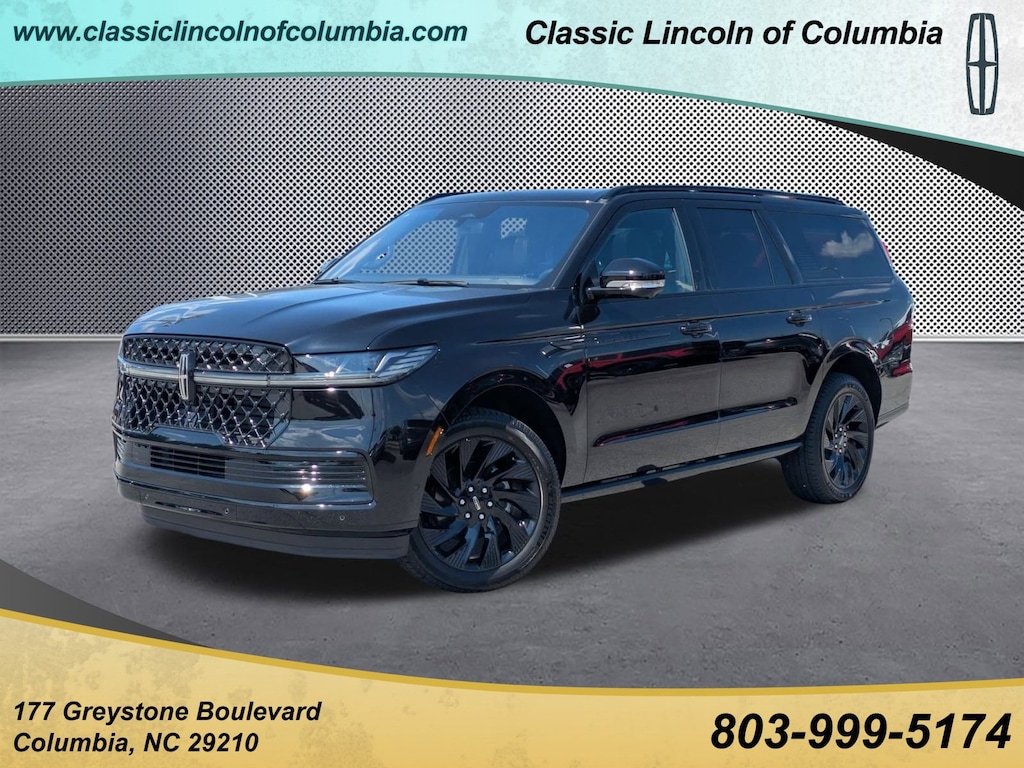 Extended Service Programs Available, 28 Speakers, 3rd row seats: split-bench, 4-Wheel Disc Brakes, ABS brakes, Adaptive suspension, Adjustable pedals, Air Conditioning, Alloy wheels, AM/FM radio: SiriusXM with 360L, Apple CarPlay/Android Auto, Audio memory, Auto High-beam Headlights, Auto Htd & Ventilated Premium Lthr Captain's Chair, Auto Start-Stop Technology, Auto tilt-away steering wheel, Auto-dimming door mirrors, Auto-dimming Rear-View mirror, Auto-leveling suspension, Automatic temperature control, Brake assist, Bumpers: body-color, Compass, Delay-off headlights, Driver door bin, Driver vanity mirror, Driver's Seat Mounted Armrest, Dual front impact airbags, Dual front side impact airbags, Electronic Stability Control, Emergency communication system: 911 Assist, Exterior Parking Camera Rear, Four wheel independent suspension, Front anti-roll bar, Front Bucket Seats, Front dual zone A/C, Front reading lights, Fully automatic headlights, Garage door transmitter, Heated door mirrors, Heated front seats, Heated rear seats, Heated steering wheel, HVAC memory, Illuminated entry, Leather steering wheel, Lincoln Connect, Lincoln Premium Connectivity, Low tire pressure warning, Memory seat, Navigation system: Connected Navigation (1-year trial), Occupant sensing airbag, Outside temperature display, Overhead airbag, Overhead console, Panic alarm, Passenger door bin, Passenger seat mounted armrest, Passenger vanity mirror, Pedal memory, Power adjustable front head restraints, Power adjustable rear head restraints, Power door mirrors, Power driver seat, Power moonroof, Power passenger seat, Power steering, Power windows, Radio data system, Radio: Revel Ultima 3D AM/FM/HD Audio System, Rain sensing wipers, Rear air conditioning, Rear anti-roll bar, Rear audio controls, Rear reading lights, Rear window defroster, Rear window wiper, Reclining 3rd row seat, Remote keyless entry, Security system, SiriusXM w/360L, Speed control, Speed-sensing steering, Speed-Sensitive Wipers, Split folding rear seat, Spoiler, Steering wheel memory, Steering wheel mounted audio controls, Tachometer, Telescoping steering wheel, Tilt steering wheel, Traction control, Trip computer, Turn signal indicator mirrors, Variably intermittent wipers, Ventilated front seats, Wheels: 22 Dark Tarnished Aluminum.2025 Lincoln Navigator L Reserve Infinite Black Metallic Clearcoat 4WD 10-Speed Automatic 3.5L V6Drivers in the greater Columbia SC rely on us for their next new or Lincoln Certified Pre-owned vehicle and automotive needs because we treat them like family. Customers make the trip from Lexington, Orangeburg, and Sumter because we are the new Lincoln dealership in the area that not only provides an array of quality products and services, but customer care that is unmatched! Here, at the Classic Lincoln of Columbia deal, you can count on the integrity of our Lincoln Certified Pre-owned vehicle collection.While every reasonable effort is made to ensure the accuracy of this information, it is the customers responsibility to verify price, vehicle equipment and availability with Classic Lincoln of Columbia. Price shown does include $699.00 closing fee but not applicable taxes, tag fees, and dealer installed accessories.