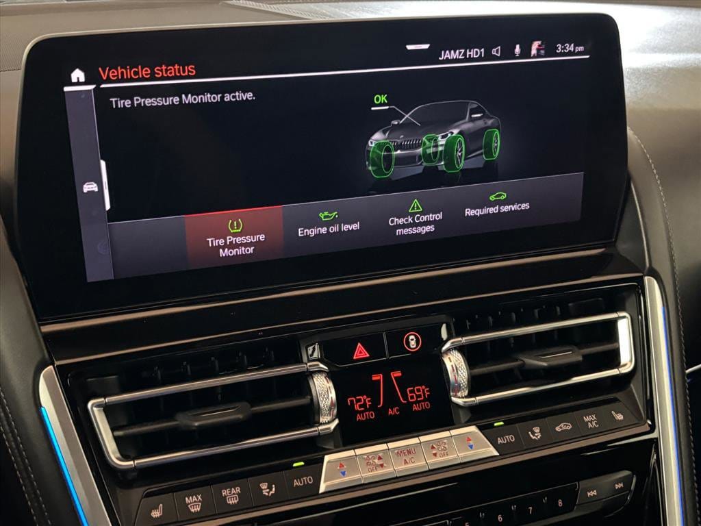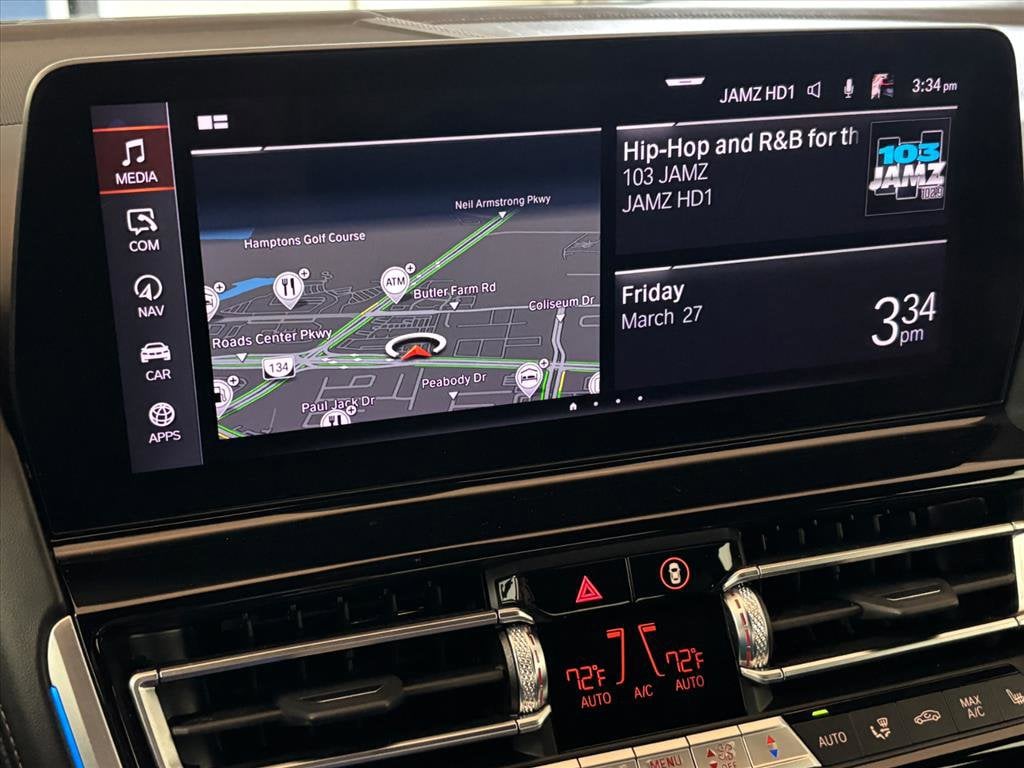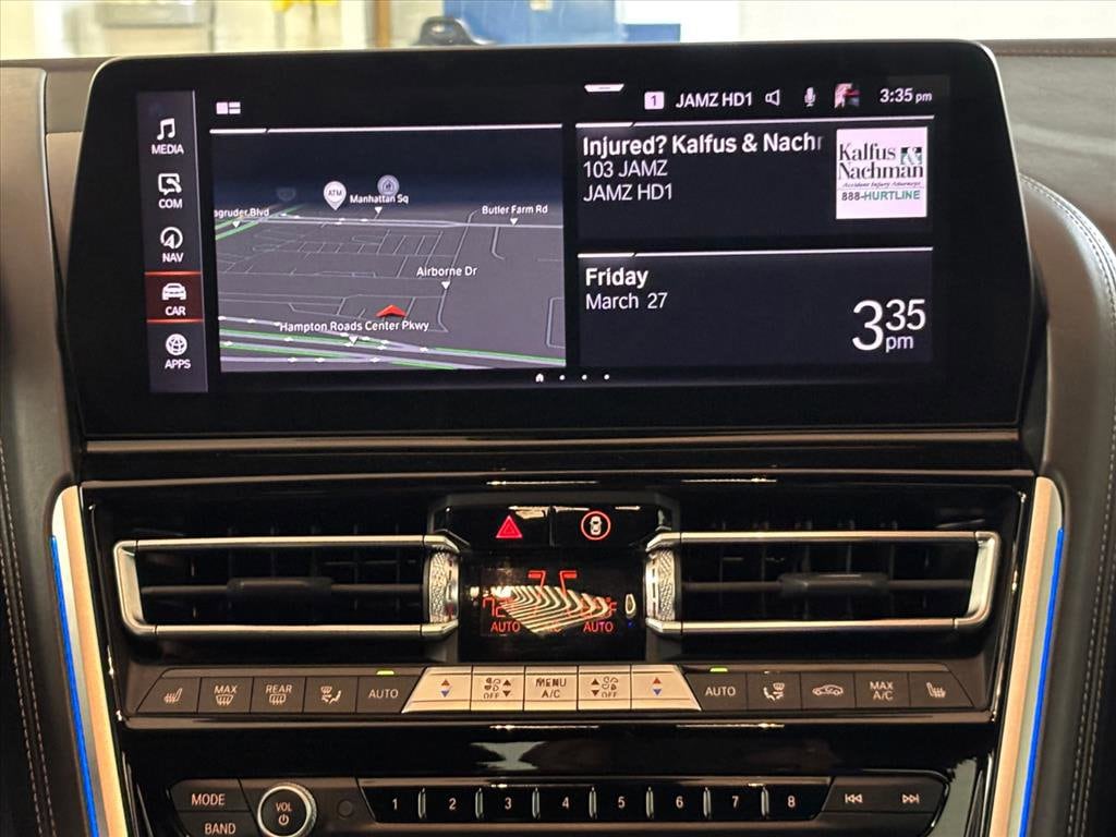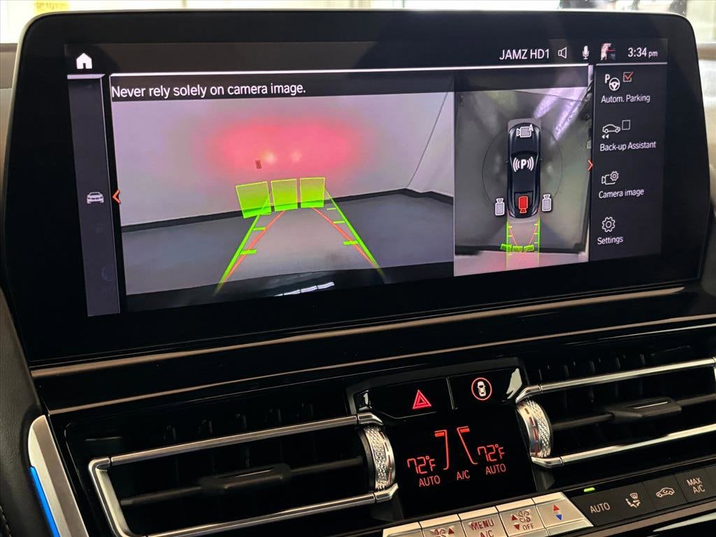Extended Warranty Available, 16 Speakers, 4-Wheel Disc Brakes, ABS brakes, Active Blind Spot Detection, Active Driving Assistant, Active Park Distance Control, Air Conditioning, Alloy wheels, AM/FM radio: SiriusXM, Apple CarPlay & Android Auto Compatibility, Auto High-beam Headlights, Auto tilt-away steering wheel, Auto-dimming door mirrors, Auto-dimming Rear-View mirror, Automatic temperature control, BMW Assist eCall, BMW TeleServices, Brake assist, Bumpers: body-color, Delay-off headlights, Door auto-latch, Driver door bin, Driver vanity mirror, Dual front impact airbags, Dual front side impact airbags, Electronic Stability Control, Emergency communication system: BMW Assist eCall, Enhanced USB & Bluetooth Plus Smartphone Integration, Extended Merino Leather Upholstery, Exterior Parking Camera Rear, Four wheel independent suspension, Front anti-roll bar, Front Bucket Seats, Front Center Armrest, Front dual zone A/C, Front reading lights, Fully automatic headlights, Garage door transmitter, harman/kardon Surround Sound System, harman/kardon® Speakers, Heads-Up Display, Heated door mirrors, Heated front seats, Heated Front Seats, Armrests & Steering Wheel, Heated steering wheel, Illuminated entry, Leather Shift Knob, Leather steering wheel, Live Cockpit Pro w/Navi, Low tire pressure warning, Memory seat, Multi-Functional Seats, Navigation System, Occupant sensing airbag, Outside temperature display, Overhead airbag, Panic alarm, Parking Assistant Plus, Passenger door bin, Passenger vanity mirror, Power door mirrors, Power driver seat, Power passenger seat, Power steering, Power windows, Radio data system, Radio: AM/FM Audio System, Rain sensing wipers, Rear anti-roll bar, Rear window defroster, Rear-View Camera, Remote keyless entry, Security system, SiriusXM Satellite Radio w/1 Year Subscription, Speed control, Speed-sensing steering, Speed-Sensitive Wipers, Split folding rear seat, Sport steering wheel, Steering wheel memory, Steering wheel mounted audio controls, Surround View w/3D View, Tachometer, Telescoping steering wheel, Tilt steering wheel, Traction control, Trip computer, Turn signal indicator mirrors, Variably intermittent wipers, Wheels: 19" x 8" Fr & 19" x 9" Rr M Double-Spoke, WiFi Hotspot, Wireless Charging.