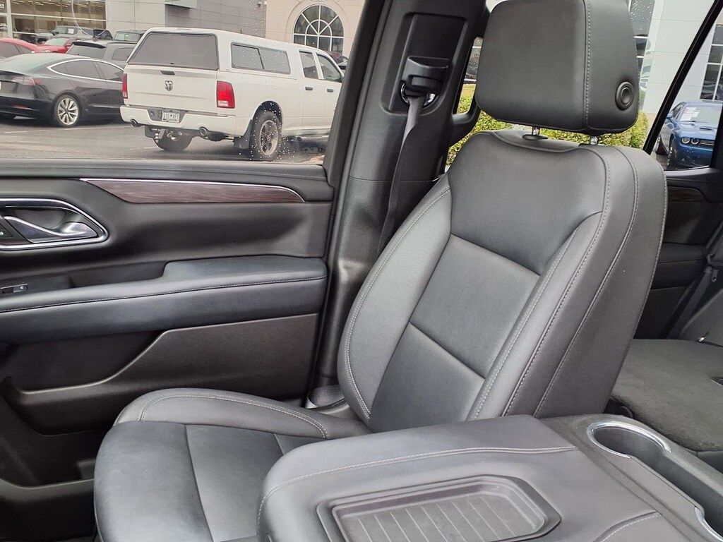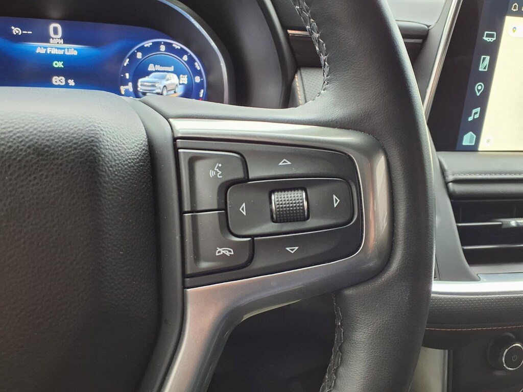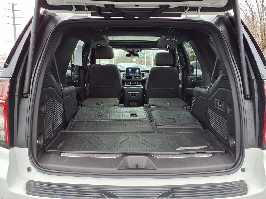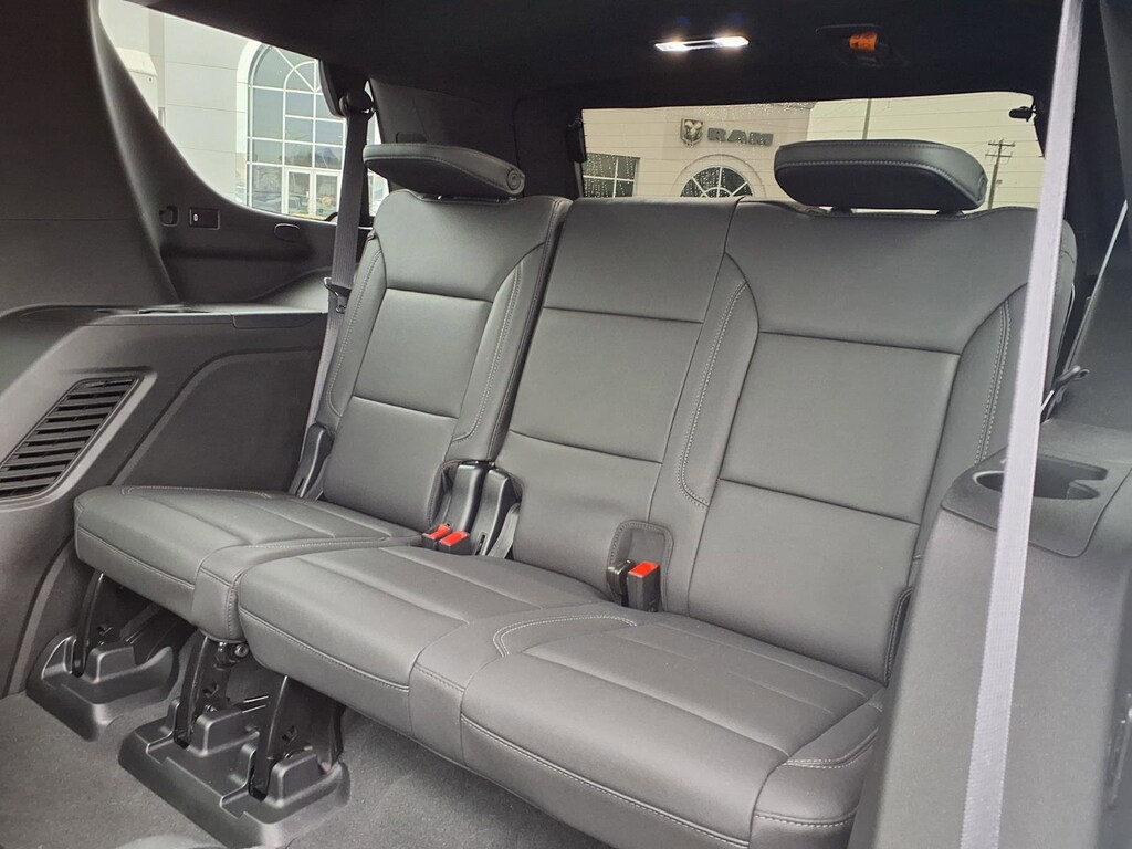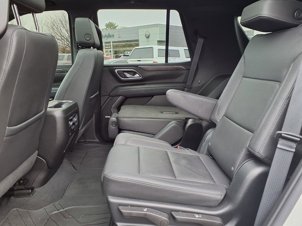 Extended Service Programs Available, 4WD, Black Leather, 10-Way Power Driver & Passenger Seat Adjusters, 1st & 2nd Row Color-Keyed Carpeted Floor Mats, 2-Speed Active Electronic AutoTrac Transfer Case, 2nd Row Pwr Release 60/40 Split-Folding Bench Seat, 3.23 Rear Axle Ratio, 3rd Row 60/40 Power-Folding Split-Bench Seat, 3rd row seats: split-bench, 4-Wheel Disc Brakes, 9 Speakers, ABS brakes, Advanced Trailering Package, Air Conditioning, Alloy wheels, AM/FM radio: SiriusXM with 360L, Apple CarPlay/Android Auto, Auto High-beam Headlights, Auto-Dimming Inside Rear-View Mirror, Auto-dimming Rear-View mirror, Automatic temperature control, Black Tubular Assist Steps, Bose 9-Speaker Stereo Audio System Feature, Brake assist, Bright Front & Rear Door Sill Plates, Bumpers: body-color, Color-Keyed Carpeting Floor Covering, Compass, Delay-off headlights, Driver & Front Outboard Passenger Airbags, Driver Alert Package, Driver door bin, Driver vanity mirror, Dual front impact airbags, Dual front side impact airbags, Dual-Pane Power Panoramic Sunroof, Electronic Stability Control, Emergency communication system: OnStar and Chevrolet connected services capable, Enhanced Driver Information Center, Extra Capacity Cooling System, Floor Console, Floor Console w/Storage Area, Four wheel independent suspension, Front anti-roll bar, Front Bucket Seats, Front Center Armrest, Front dual zone A/C, Front High-Approach Angle Fascia, Front High-Back Reclining Bucket Seats, Front reading lights, Fully automatic headlights, Garage door transmitter, Hands-Free Rear Power Programmable Liftgate, HD Surround Vision, Heated 2nd Row Outboard Seats, Heated door mirrors, Heated Driver & Front Passenger Seats, Heated front seats, Heated Steering Wheel, Hill Descent Control, Hitch Guidance w/Hitch View, Illuminated entry, Infotainment Display, Integrated Trailer Brake Controller, Lane Change Alert w/Side Blind Zone Alert, Leather-Appointed Seat Trim, LED Daytime Running Lamps, Low tire pressure warning, Luxury Package, Max Trailering Package, Memory seat, Memory Settings, Memory Settings for Driver, Navigation System, Occupant sensing airbag, Outside Heated Power-Adjustable Mirrors, Outside temperature display, Overhead airbag, Overhead console, Panic alarm, Passenger door bin, Passenger vanity mirror, Power door mirrors, Power driver seat, Power Liftgate, Power passenger seat, Power Release 2nd Row Bucket Seats, Power steering, Power Tilt & Telescopic Steering Column, Power windows, Preferred Equipment Group 2Z7, Premium audio system: Chevrolet Infotainment 3 Premium, Premium Smooth Ride Suspension, Radio: Chevrolet Infotainment 3 Premium System, Rain sensing wipers, Rear air conditioning, Rear anti-roll bar, Rear Cross Traffic Alert, Rear Pedestrian Alert, Rear reading lights, Rear seat center armrest, Rear window defroster, Rear window wiper, Red Horizontal-Mounted Recovery Hooks, Remote keyless entry, Remote Start, Roof rack: rails only, Security system, SiriusXM Radio w/360L, Smart Trailer Integration Indicator, Speed control, Speed-sensing steering, Split folding rear seat, Spoiler, Steering wheel mounted audio controls, Tachometer, Telescoping steering wheel, Tilt steering wheel, Traction control, Trip computer, Universal Home Remote, Variably intermittent wipers, Voltmeter, Wheels: 20" x 9" Machined Aluminum, Wireless Charging, Wrapped Steering Wheel, 4WD, Black Leather.