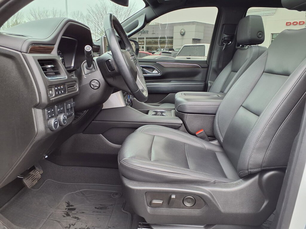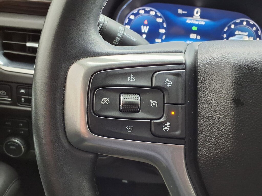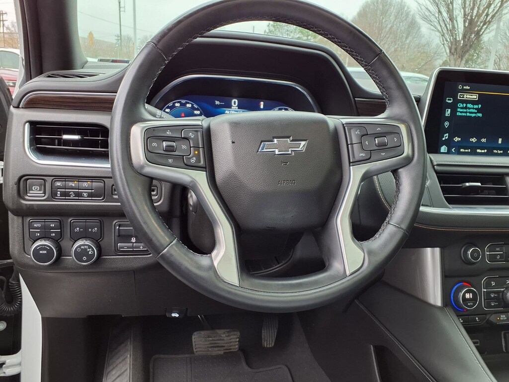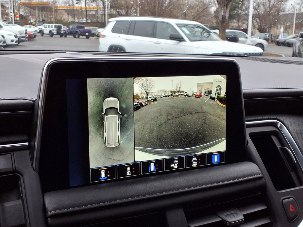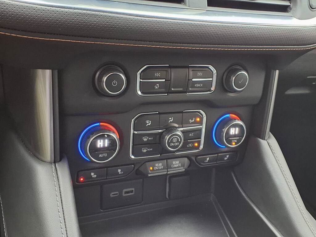 Extended Service Programs Available, 4WD, Black Leather, 10-Way Power Driver & Passenger Seat Adjusters, 1st & 2nd Row Color-Keyed Carpeted Floor Mats, 2-Speed Active Electronic AutoTrac Transfer Case, 2nd Row Pwr Release 60/40 Split-Folding Bench Seat, 3.23 Rear Axle Ratio, 3rd Row 60/40 Power-Folding Split-Bench Seat, 3rd row seats: split-bench, 4-Wheel Disc Brakes, 9 Speakers, ABS brakes, Advanced Trailering Package, Air Conditioning, Alloy wheels, AM/FM radio: SiriusXM with 360L, Apple CarPlay/Android Auto, Auto High-beam Headlights, Auto-Dimming Inside Rear-View Mirror, Auto-dimming Rear-View mirror, Automatic temperature control, Black Tubular Assist Steps, Bose 9-Speaker Stereo Audio System Feature, Brake assist, Bright Front & Rear Door Sill Plates, Bumpers: body-color, Color-Keyed Carpeting Floor Covering, Compass, Delay-off headlights, Driver & Front Outboard Passenger Airbags, Driver Alert Package, Driver door bin, Driver vanity mirror, Dual front impact airbags, Dual front side impact airbags, Dual-Pane Power Panoramic Sunroof, Electronic Stability Control, Emergency communication system: OnStar and Chevrolet connected services capable, Enhanced Driver Information Center, Extra Capacity Cooling System, Floor Console, Floor Console w/Storage Area, Four wheel independent suspension, Front anti-roll bar, Front Bucket Seats, Front Center Armrest, Front dual zone A/C, Front High-Approach Angle Fascia, Front High-Back Reclining Bucket Seats, Front reading lights, Fully automatic headlights, Garage door transmitter, Hands-Free Rear Power Programmable Liftgate, HD Surround Vision, Heated 2nd Row Outboard Seats, Heated door mirrors, Heated Driver & Front Passenger Seats, Heated front seats, Heated Steering Wheel, Hill Descent Control, Hitch Guidance w/Hitch View, Illuminated entry, Infotainment Display, Integrated Trailer Brake Controller, Lane Change Alert w/Side Blind Zone Alert, Leather-Appointed Seat Trim, LED Daytime Running Lamps, Low tire pressure warning, Luxury Package, Max Trailering Package, Memory seat, Memory Settings, Memory Settings for Driver, Navigation System, Occupant sensing airbag, Outside Heated Power-Adjustable Mirrors, Outside temperature display, Overhead airbag, Overhead console, Panic alarm, Passenger door bin, Passenger vanity mirror, Power door mirrors, Power driver seat, Power Liftgate, Power passenger seat, Power Release 2nd Row Bucket Seats, Power steering, Power Tilt & Telescopic Steering Column, Power windows, Preferred Equipment Group 2Z7, Premium audio system: Chevrolet Infotainment 3 Premium, Premium Smooth Ride Suspension, Radio: Chevrolet Infotainment 3 Premium System, Rain sensing wipers, Rear air conditioning, Rear anti-roll bar, Rear Cross Traffic Alert, Rear Pedestrian Alert, Rear reading lights, Rear seat center armrest, Rear window defroster, Rear window wiper, Red Horizontal-Mounted Recovery Hooks, Remote keyless entry, Remote Start, Roof rack: rails only, Security system, SiriusXM Radio w/360L, Smart Trailer Integration Indicator, Speed control, Speed-sensing steering, Split folding rear seat, Spoiler, Steering wheel mounted audio controls, Tachometer, Telescoping steering wheel, Tilt steering wheel, Traction control, Trip computer, Universal Home Remote, Variably intermittent wipers, Voltmeter, Wheels: 20" x 9" Machined Aluminum, Wireless Charging, Wrapped Steering Wheel, 4WD, Black Leather.