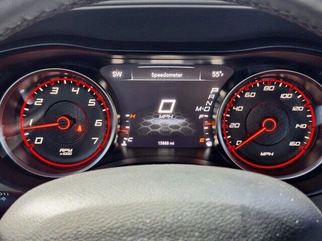 Extended Service Programs Available, Black Cloth, 1-Yr SiriusXM Guardian Trial, 2-Piece Shark Fin Antenna, 4-Wheel Disc Brakes, 4G LTE Wi-Fi Hot Spot, 6 Speakers, 8.4" Touchscreen Display, ABS brakes, Air Conditioning, Alloy wheels, AM/FM radio: SiriusXM, Anti-whiplash front head restraints, Apple CarPlay, Apple CarPlay/Android Auto, Auto-dimming Rear-View mirror, Automatic temperature control, Brake assist, Bumpers: body-color, Cloth Performance Seats, Compass, Delay-off headlights, Driver door bin, Driver vanity mirror, Dual front impact airbags, Dual front side impact airbags, Electronic Stability Control, Emergency communication system: SiriusXM Guardian, For Details, Visit DriveUconnect.com, Four wheel independent suspension, Front anti-roll bar, Front Bucket Seats, Front Center Armrest, Front dual zone A/C, Front reading lights, Fully automatic headlights, Garage door transmitter: HomeLink, Google Android Auto, GPS Antenna Input, HD Radio, Heated door mirrors, Illuminated entry, Integrated Center Stack Radio, Integrated Voice Command w/Bluetooth, Knee airbag, Leather Shift Knob, Low tire pressure warning, Media Hub (2 USB, AUX), Occupant sensing airbag, Outside temperature display, Overhead airbag, Overhead console, Panic alarm, ParkView Rear Back-Up Camera, Passenger door bin, Passenger vanity mirror, Power 2-Way Driver Lumbar Adjust, Power 8-Way Driver Seat, Power door mirrors, Power driver seat, Power steering, Power windows, Quick Order Package 26N, Radio: Uconnect 4C w/8.4" Display, Rear anti-roll bar, Rear Armrest w/Cupholder Seat, Rear reading lights, Rear seat center armrest, Rear window defroster, Remote keyless entry, Speed control, Speed-Sensitive Wipers, Split folding rear seat, Spoiler, Sport steering wheel, Steering wheel mounted audio controls, Tachometer, Telescoping steering wheel, Tilt steering wheel, Traction control, Trip computer, USB Host Flip, Variably intermittent wipers, Wheels: 20" x 8" Machined w/Granite Pocket, Black Cloth.