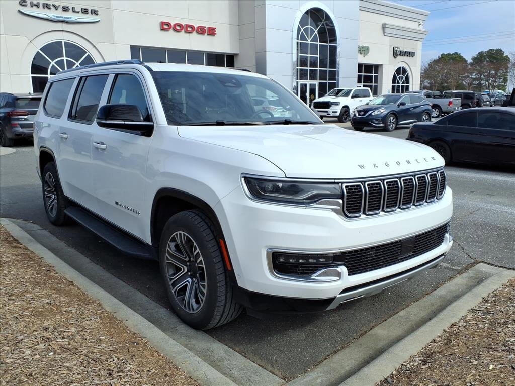 Extended Service Programs Available, 10 Speakers, 3.55 Rear Axle Ratio, 3rd row seats: bench, 4-Wheel Disc Brakes, ABS brakes, Adjustable pedals, Air Conditioning, Alloy wheels, AM/FM radio: SiriusXM with 360L, Anti-whiplash front head restraints, Apple CarPlay/Android Auto, Audio memory, Auto-dimming door mirrors, Auto-dimming Rear-View mirror, Auto-leveling suspension, Automatic temperature control, Brake assist, Bumpers: body-color, Compass, Delay-off headlights, Driver door bin, Driver vanity mirror, Driver's Seat Mounted Armrest, Dual front impact airbags, Dual front side impact airbags, Electronic Stability Control, Emergency communication system: Wagoneer Connect, Exterior Parking Camera Rear, Four wheel independent suspension, Front anti-roll bar, Front Bucket Seats, Front Center Armrest w/Storage, Front dual zone A/C, Front fog lights, Front reading lights, Fully automatic headlights, Garage door transmitter, Genuine wood console insert, Genuine wood dashboard insert, Genuine wood door panel insert, Heated door mirrors, Heated front seats, Heated steering wheel, Illuminated entry, Knee airbag, Leather Trimmed Bucket Seats, Low tire pressure warning, Memory seat, Navigation System, Normal Duty Suspension, Occupant sensing airbag, Outside temperature display, Overhead airbag, Overhead console, Panic alarm, Passenger door bin, Passenger seat mounted armrest, Passenger vanity mirror, Pedal memory, Power adjustable front head restraints, Power door mirrors, Power driver seat, Power Liftgate, Power passenger seat, Power steering, Power windows, Quick Order Package 25J, Radio data system, Radio: Uconnect 5 Nav w/10.1" Display, Rain sensing wipers, Rear air conditioning, Rear anti-roll bar, Rear reading lights, Rear seat center armrest, Rear window defroster, Rear window wiper, Reclining 3rd row seat, Remote keyless entry, Security system, Speed control, Speed-sensing steering, Speed-Sensitive Wipers, Split folding rear seat, Steering wheel memory, Steering wheel mounted audio controls, Tachometer, Telescoping steering wheel, Tilt steering wheel, Traction control, Trip computer, Turn signal indicator mirrors, Variably intermittent wipers, Ventilated front seats, Voltmeter, Wheels: 20" x 9.0" Premium 2 Aluminum.