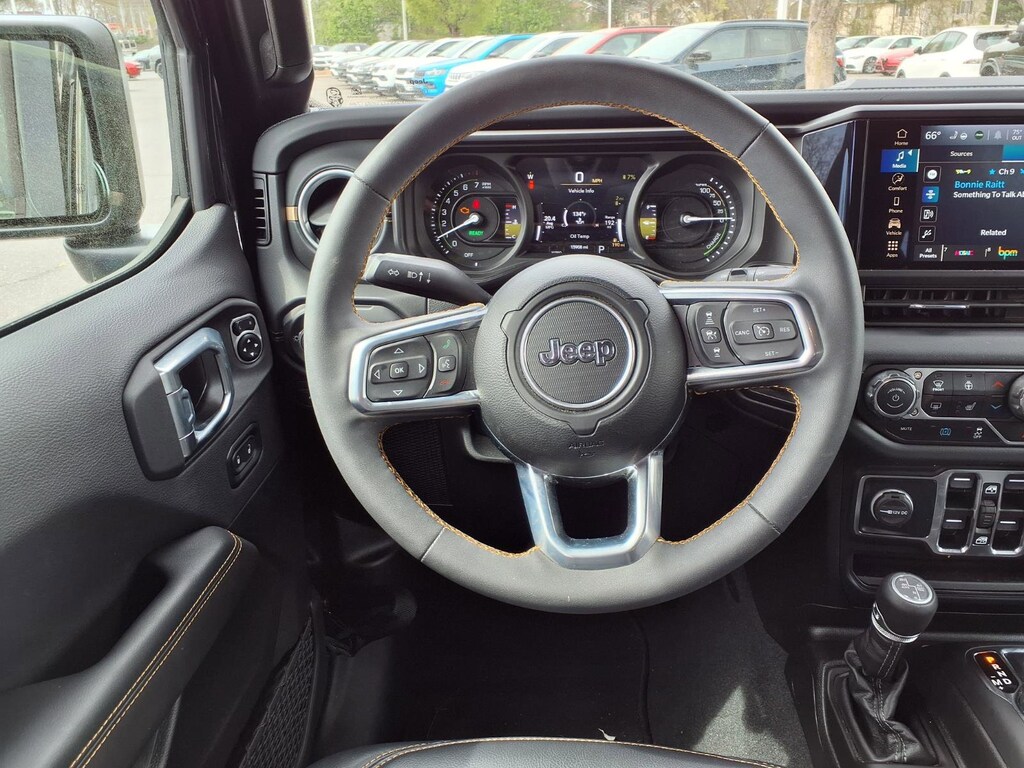 Extended Service Programs Available, 2.0L I4 DOHC, 12.3" Touchscreen Display, 3.73 Rear Axle Ratio, 4-Wheel Disc Brakes, 4G LTE Wi-Fi Hot Spot, 8 Speakers, ABS brakes, Air Conditioning, Alloy wheels, AM/FM radio: SiriusXM, Apple CarPlay, Apple CarPlay/Android Auto, Auto High Beam Headlamp Control, Automatic temperature control, Blind Spot & Cross Path Detection, Brake assist, Cloth Low-Back Bucket Seats, Compass, Connectivity - US/Canada, Delay-off headlights, Disassociated Touchscreen Display, Driver door bin, Driver vanity mirror, Dual front impact airbags, Dual front side impact airbags, Electronic Stability Control, Emergency communication system: Jeep Connect, Front anti-roll bar, Front Bucket Seats, Front Center Armrest w/Storage, Front dual zone A/C, Front fog lights, Front reading lights, Fully automatic headlights, Google Android Auto, Heated door mirrors, Heated front seats, Heated steering wheel, Illuminated entry, Integrated Center Stack Radio, Integrated roll-over protection, Integrated Voice Command w/Bluetooth, Low tire pressure warning, Occupant sensing airbag, Outside temperature display, Overhead airbag, Panic alarm, ParkSense Rear Park Assist System, ParkView Rear Back-Up Camera, Passenger door bin, Passenger vanity mirror, Power door mirrors, Power steering, Power Top Quarter Window Storage Bag, Power windows, Quick Order Package 29P Sahara, Radio data system, Radio: Uconnect 5 w/12.3" Display, Rear anti-roll bar, Rear reading lights, Rear seat center armrest, Rear Window Defroster, Rear Window Wiper/Washer, Remote keyless entry, Removable Rear Quarter Windows, Safety Group, Security system, Sky 1-Touch Power Top, Speed control, Split folding rear seat, Sport Suspension, Steering wheel mounted audio controls, Tachometer, Telescoping steering wheel, Tilt steering wheel, Traction control, Trip computer, Variably intermittent wipers, Voltmeter, Wheels: 20" x 8" Painted Black Aluminum, 2.0L I4 DOHC.