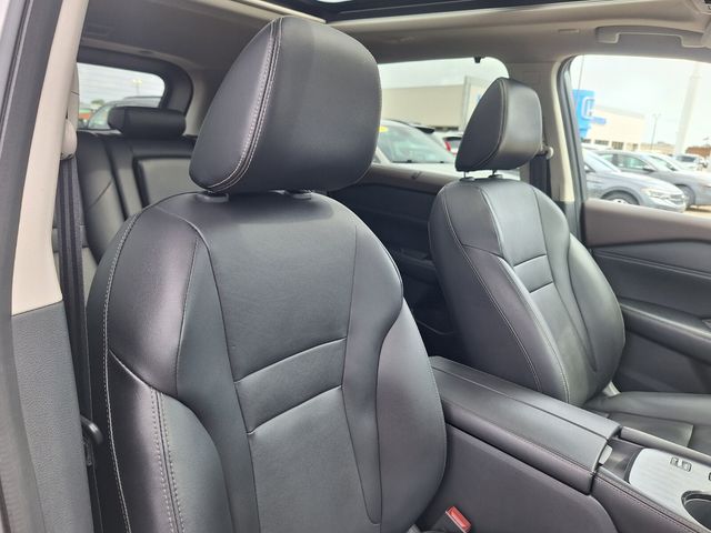 19" Aluminum Alloy Wheels, 4-Wheel Disc Brakes, 5.604 Axle Ratio, 6 Speakers, ABS brakes, Air Conditioning, Alloy wheels, AM/FM Radio, AM/FM radio: SiriusXM, Auto High-beam Headlights, Auto-dimming Rear-View mirror, Automatic temperature control, Black Splash Guards (Set of 4), Bose Premium Audio System, Brake assist, Bumpers: body-color, Chrome Rear Bumper Protector, Delay-off headlights, Driver door bin, Driver vanity mirror, Dual front impact airbags, Dual front side impact airbags, Electronic Stability Control, Emergency communication system: NissanConnect Services, First Aid Kit, Floor Mats w/2-Piece Cargo Area Protector, Four wheel independent suspension, Front anti-roll bar, Front Bucket Seats, Front Center Armrest, Front dual zone A/C, Front reading lights, Front, Side & Rear Sonar, Fully automatic headlights, Heated door mirrors, Heated Front Bucket Seats, Heated front seats, Heated steering wheel, Illuminated entry, Knee airbag, Leather steering wheel, Leather-Appointed Seat Trim, Low tire pressure warning, Memory seat, Motion Activated Power Liftgate, NissanConnect featuring Apple CarPlay and Android Auto, Occupant sensing airbag, Outside temperature display, Overhead airbag, Overhead console, Panic alarm, Passenger door bin, Passenger vanity mirror, Power door mirrors, Power driver seat, Power Liftgate, Power moonroof, Power passenger seat, Power steering, Power windows, ProPILOT Assist w/Navi-link, Radio data system, Radio: AM/FM NissanConnect w/Navigation, Rear anti-roll bar, Rear Door Sunshades, Rear Parking Sensors, Rear reading lights, Rear seat center armrest, Rear side impact airbag, Rear window defroster, Rear window wiper, Remote keyless entry, Security system, SL Premium Package, Speed control, Speed-Sensitive Wipers, Split folding rear seat, Spoiler, Steering wheel mounted audio controls, Tachometer, Telescoping steering wheel, Tilt steering wheel, Traction control, Traffic Sign Recognition, Tri-Zone HVAC, Trip computer, Turn signal indicator mirrors, Variably intermittent wipers, Virtual appointments, Home Delivery.