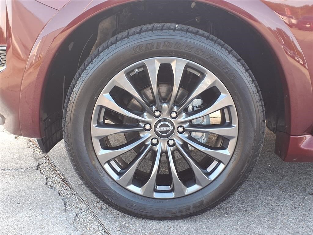We Deliver Anywhere, NISSAN FACTORY CERTIFIED, Extended Service Programs Available, 4WD, Navigation System, 13 Speakers, 2.937 Axle Ratio, 3rd row seats: split-bench, 4-Wheel Disc Brakes, ABS brakes, Air Conditioning, Alloy wheels, AM/FM radio: SiriusXM, Anti-whiplash front head restraints, Auto High-beam Headlights, Auto tilt-away steering wheel, Auto-dimming door mirrors, Auto-dimming Rear-View mirror, Auto-leveling suspension, Automatic temperature control, Brake assist, Bumpers: body-color, Climate-Controlled Front Bucket Seats, Delay-off headlights, Driver door bin, Driver vanity mirror, Dual front impact airbags, Dual front side impact airbags, Electronic Stability Control, Emergency communication system: NissanConnect Services, Exterior Parking Camera Rear, Four wheel independent suspension, Front anti-roll bar, Front Bucket Seats, Front Center Armrest, Front dual zone A/C, Front fog lights, Front reading lights, Fully automatic headlights, Garage door transmitter: HomeLink, Heated door mirrors, Heated front seats, Heated rear seats, Heated steering wheel, HVAC memory, Illuminated entry, Knee airbag, Leather Shift Knob, Leather steering wheel, Low tire pressure warning, Memory seat, Occupant sensing airbag, Outside temperature display, Overhead airbag, Overhead console, Panic alarm, Passenger door bin, Passenger vanity mirror, Power door mirrors, Power driver seat, Power Liftgate, Power moonroof, Power passenger seat, Power steering, Power windows, Quilted Leather Seat Trim, Radio: NissanConnect w/SiriusXM, Rain sensing wipers, Rear air conditioning, Rear anti-roll bar, Rear reading lights, Rear seat center armrest, Rear window defroster, Rear window wiper, Reclining 3rd row seat, Remote keyless entry, Security system, Speed control, Speed-sensing steering, Speed-Sensitive Wipers, Split folding rear seat, Spoiler, Steering wheel memory, Steering wheel mounted audio controls, Tachometer, Telescoping steering wheel, Tilt steering wheel, Traction control, Trip computer, Turn signal indicator mirrors, Variably intermittent wipers, Ventilated front seats, Voltmeter, Wheels: 22" x 8J Machine-Faced w/Tinted Clear Coat, 4WD, Navigation System.
