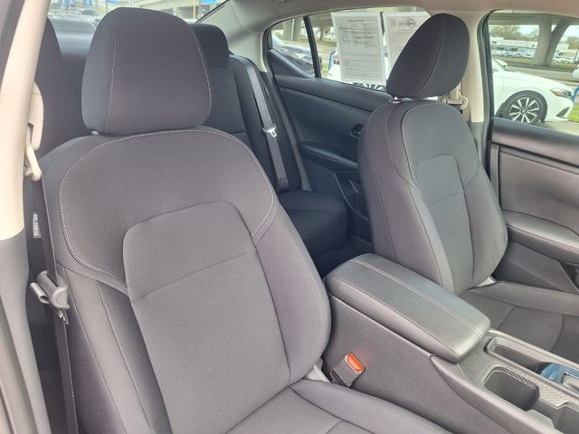 16" Steel Wheels w/Full Wheel Covers, 4 Speakers, ABS brakes, Air Conditioning, AM/FM radio, Auto High-beam Headlights, Blind Spot Warning, Body Colored Splash Guards (4-Piece), Brake assist, Bumpers: body-color, Carpeted Floor Mats w/Trunk Mat, Clear Rear Bumper Protector, Cloth Seat Trim, Delay-off headlights, Driver door bin, Driver vanity mirror, Dual front impact airbags, Dual front side impact airbags, Electronic Stability Control, Four wheel independent suspension, Front anti-roll bar, Front Bucket Seats, Front Center Armrest, Front reading lights, Fully automatic headlights, Illuminated entry, Knee airbag, Low tire pressure warning, NissanConnect featuring Apple CarPlay and Android Auto, Occupant sensing airbag, Outside temperature display, Overhead airbag, Overhead console, Panic alarm, Passenger door bin, Passenger vanity mirror, Power door mirrors, Power steering, Power windows, Radio data system, Radio: AM/FM w/RDS/MP3/Aux-In, Rear anti-roll bar, Rear Parking Sensors, Rear side impact airbag, Rear window defroster, Remote keyless entry, Speed control, Speed-sensing steering, Split folding rear seat, Steering wheel mounted audio controls, Tachometer, Telescoping steering wheel, Tilt steering wheel, Traction control, Trip computer, Variably intermittent wipers, Virtual appointments, Home Delivery.