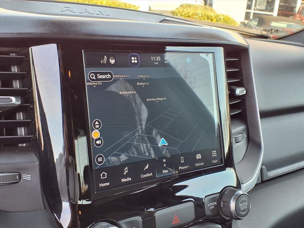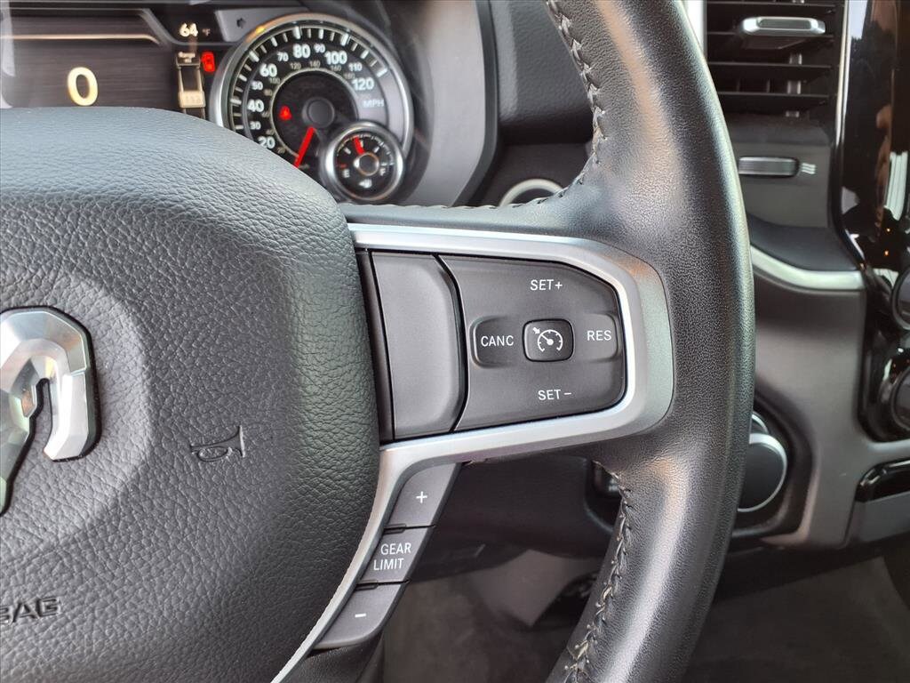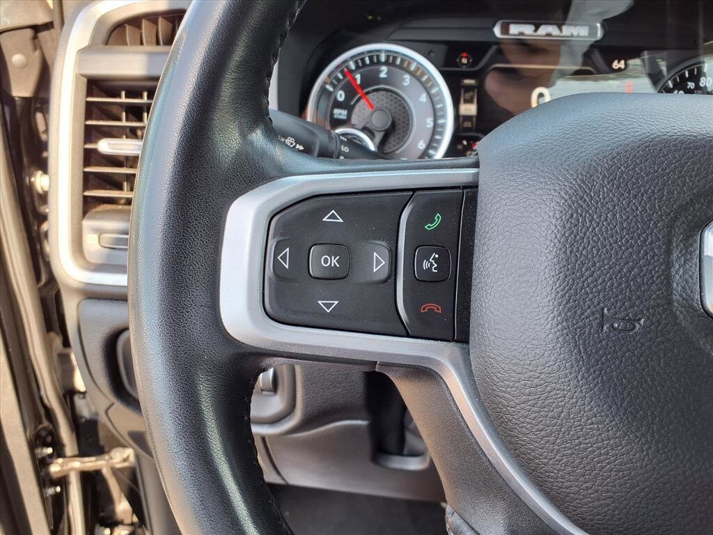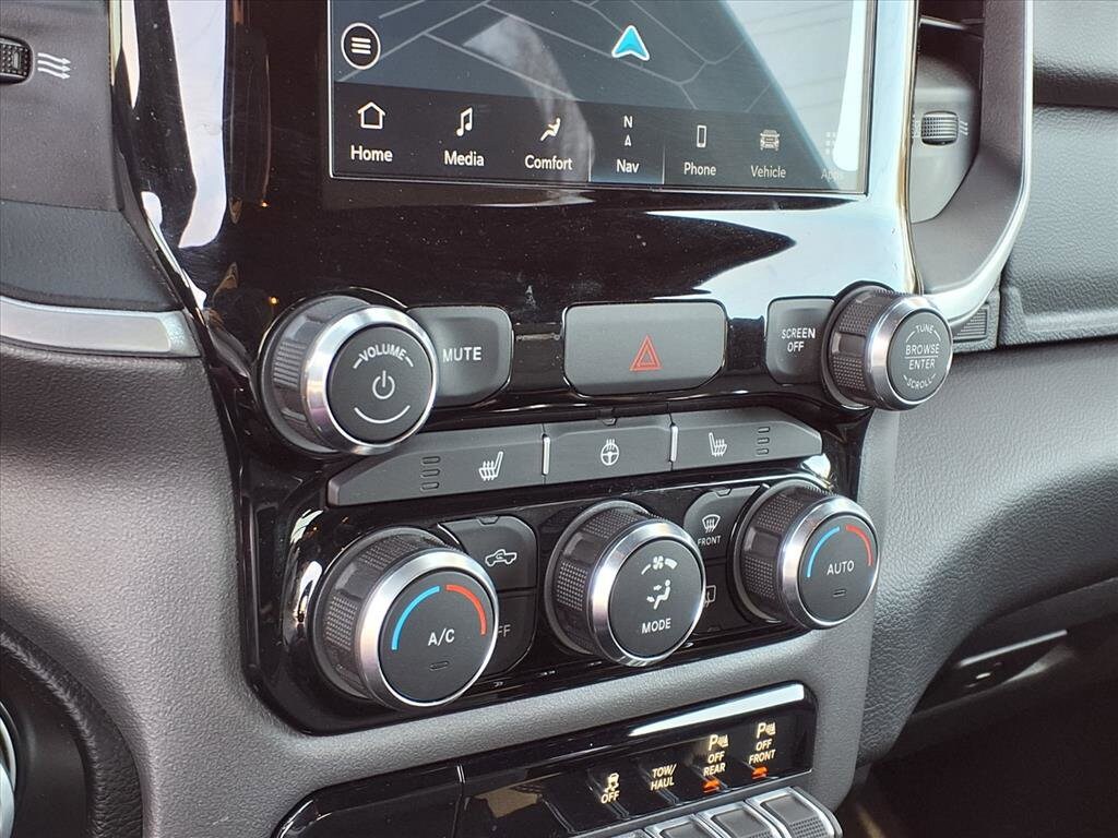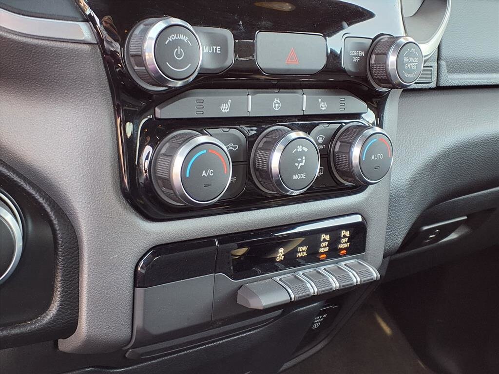 Extended Service Programs Available, 115V Auxiliary Power Outlet, 115V Auxiliary Rear Power Outlet, 3 Rear Seat Head Restraints, 3.21 Rear Axle Ratio, 4 Way Front Headrests, 4-Wheel Disc Brakes, 400W Inverter, 48V Belt Starter Generator, 4G LTE Wi-Fi Hot Spot, 6 Speakers, 8.4" Touchscreen Display, ABS brakes, Air Conditioning, Air Conditioning ATC w/Dual Zone Control, All R1 High Radios, All Radio Equipped Vehicles, Alloy wheels, AM/FM radio, Apple CarPlay, Auto-Dimming Exterior Driver Mirror, Auto-Dimming Rear-View Mirror, Big Horn Badge, Big Horn Level 2 Equipment Group, Black Exterior Mirrors, Black Premium Power Mirrors, Bluetooth Handsfree Phone & Audio, Brake assist, Bumpers: chrome, Class IV Receiver Hitch, Cloth Bench Seat, Cluster 7.0" TFT Color Display, Compass, Connected Travel & Traffic Services, Connectivity - US/Canada, Convex Wide-Angle Mirror Insert, Delay-off headlights, Disassociated Touchscreen Display, Driver door bin, Dual front impact airbags, Dual front side impact airbags, Electronic Stability Control, Emergency communication system: SiriusXM Guardian, Exterior Mirrors Courtesy Lamps, Exterior Mirrors w/Heating Element, Exterior Mirrors w/Supplemental Signals, For Details, Visit DriveUconnect.com, For More Info, Call 800-643-2112, Front anti-roll bar, Front Center Armrest w/Storage, Front fog lights, Front reading lights, Front Seat Back Map Pockets, Front wheel independent suspension, Fully automatic headlights, Global Telematics Box Module (TBM), Glove Box Lamp, Google Android Auto, GPS Antenna Input, GPS Navigation, HD Radio, Heated door mirrors, Heated Front Seats, Heated Steering Wheel, Illuminated entry, Integrated Center Stack Radio, Integrated Voice Command w/Bluetooth, Leather steering wheel, Low tire pressure warning, Manual Adjust 4-Way Front Passenger Seat, Media Hub w/2 Charge Only USBs, Occupant sensing airbag, Outside temperature display, Overhead airbag, Overhead console, Panic alarm, ParkSense Front/Rear Park Assist w/Stop, ParkView Rear Back-Up Camera, Passenger door bin, Passenger vanity mirror, Power 2-Way Driver Lumbar Adjust, Power 8-Way Driver Seat, Power Adjustable Pedals, Power door mirrors, Power steering, Power windows, Power-Folding Mirrors, Quick Order Package 25Z Big Horn, Radio data system, Radio: Uconnect 3 w/5" Display, Radio: Uconnect 5 Nav w/8.4" Display, Radio: Uconnect 5 W w/8.4" Display, Rear 60/40 Folding Seat, Rear anti-roll bar, Rear Dome w/On/Off Switch Lamp, Rear Power Sliding Window, Rear seat center armrest, Rear step bumper, Rear Window Defroster, Remote keyless entry, Remote Start System, Security Alarm, SiriusXM Radio Service, SiriusXM Satellite Radio, SiriusXM w/360L, Speed control, Split folding rear seat, Steering wheel mounted audio controls, Sun Visors w/Illuminated Vanity Mirrors, Tachometer, Telescoping steering wheel, Tilt steering wheel, Traction control, Trip computer, Universal Garage Door Opener, USB Host Flip, Variably intermittent wipers, Voltmeter, Wheels: 18" x 8" Cast-Aluminum Painted.