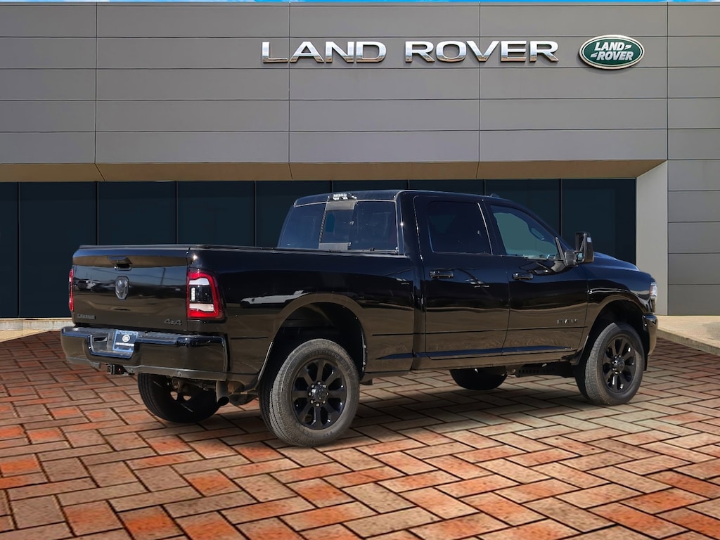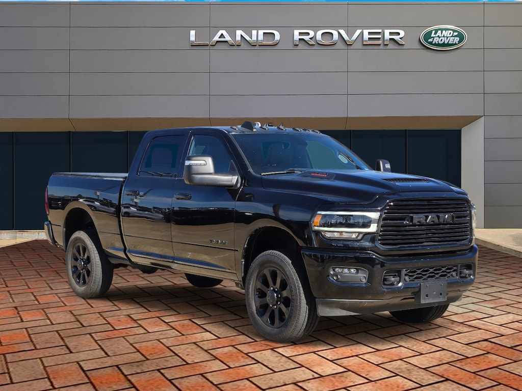 Virtual appointments, Home Delivery, LAND ROVER SHREVEPORT, CONTACT 318-383-4600, 10 Speakers, 12" Touchscreen Display, 2 Way Rear Headrest Seat, 2nd Row In Floor Storage Bins, 4 Way Front Headrests, 4-Wheel Disc Brakes, 4G LTE Wi-Fi Hot Spot, Active Noise Control System, Air Conditioning, Alexa Built-In, Anti-Spin Differential Rear Axle, Apple CarPlay, Auto Adjust In Reverse Exterior Mirrors, Auto Dim Exterior Mirror, Auto High Beam Headlamp Control, Auto Power-Folding Mirrors, Auto-Dimming Exterior Passenger Mirror, Automatic temperature control, Black Exterior Truck Badging, Black Headlamp Bezels, Black Interior Accents, Black Ram Head Tailgate Badge, Black Tail Lamp Bezels, Black Wheel Center Hub, Blind Spot & Cross Path Detection, Body Color Grille Surround, Center Hub, Chrome Exterior Mirrors, Connected Travel & Traffic Services, Connectivity - US/Canada, Disassociated Touchscreen Display, Exterior Mirrors Courtesy Lamps, Exterior Mirrors w/Heating Element, Exterior Mirrors w/Memory, Exterior Mirrors w/Supplemental Signals, Foam Bottle Insert (Door Trim Panel), For Details, Visit DriveUconnect.com, For More Info, Call 800-643-2112, Forward & Reverse Utility Lights, Front Center Armrest w/Storage, Front dual zone A/C, Front LED Fog Lamps, Global Telematics Box Module (TBM), Gloss Black Grille Billets/Accents, Google Android Auto, GPS Antenna Input, GPS Navigation, HD Radio, Integrated Voice Command w/Bluetooth, Laramie Level 1 Equipment Group, LED Reflector Headlamps, LED Tail Lamps, Mirror Running Lights, Navigation System, Night Edition, Off-Road Information Pages, Panic alarm, ParkSense Front/Rear Park Assist System, ParkView Rear Back-Up Camera, Power 2-Way Driver Lumbar Adjust, Power 2-Way Passenger Lumbar Adjust, Power Adjust 8-Way Driver Seat, Power Adjust 8-Way Front Passenger Seat, Power Adjust Mirrors, Power Adjustable Convex Aux Mirrors, Power Adjustable Pedals w/Memory, Power driver seat, Power Heated Fold Telescopic Mirrors w/Memory, Power Telescoping Mirrors, Quick Order Package 2GH Laramie, Radio: Uconnect 5 Nav w/12.0" Display, Rain Sensitive Windshield Wipers, Rear Power Sliding Window, Rear Window Defroster, Remote Tailgate Release, Selectable Tire Fill Alert, SiriusXM Radio Service, SiriusXM w/360L, Sport Performance Hood, Tow Hooks, Trailer Tow Pages, Wheels: 18" x 8.0" Polished Aluminum, Wheels: 20" x 8.0" Black Painted Aluminum.