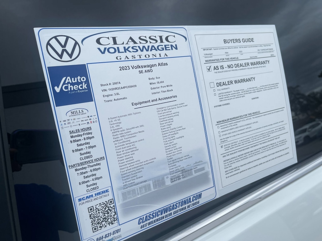 This 2023 Volkswagen Atlas V6 SE with Technology has been well maintained and has completed our multi-point inspection process. With approximately 58,000 miles, this Atlas offers an excellent balance of space, comfort, and value, making it a strong option for families or anyone needing a capable and affordable third-row SUV. This vehicle has spent most of its life locally, with the majority of its service completed here in town.